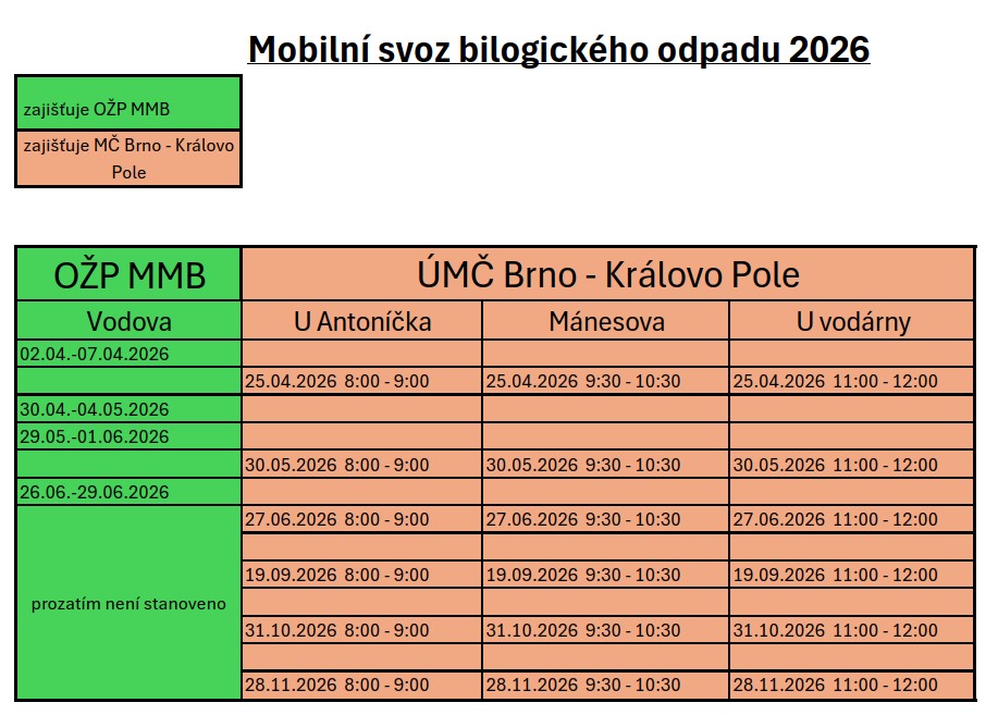 Umístění velkokapacitních kontejnerů na bioodpad na území MČ Brno – Královo Pole - svozová místa a termíny: